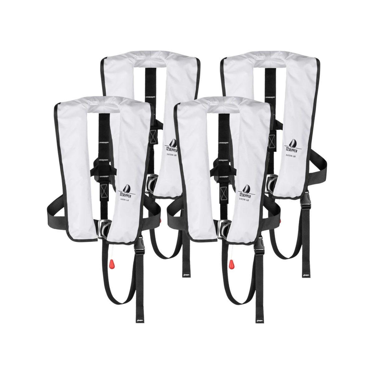 4er-Set 12skipper Automatische Rettungsweste 165N ISO (150N Klasse) mit Harness/D-Ring/Lifebelt, UML-Auslöser, Farbe weiß