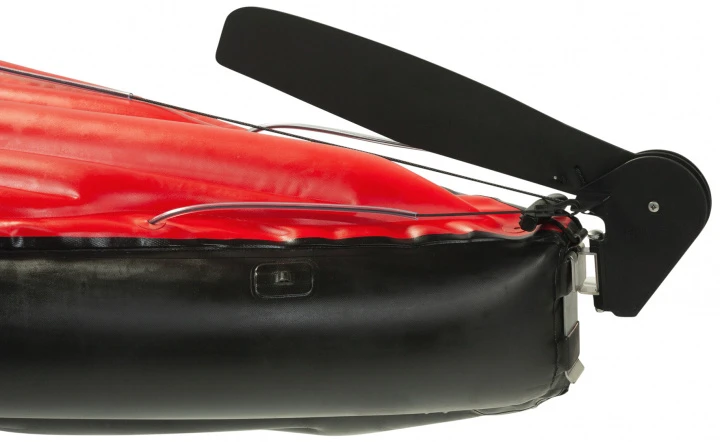Fußsteuer mit Aufholvorrichtung für das Steuerblatt. Erleichtert das Kurs halten bei Wind.