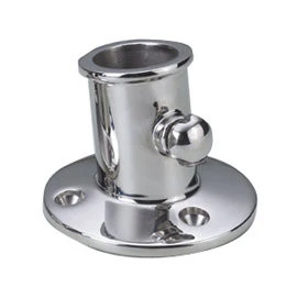 Dieser Flaggenstockhalter dient als Fuß für Flaggenstöcke mit einem Durchmesser von 25 mm. Die Halterung ist aus nichtrostendem Edelstahl gefertigt (AISI 316 / A4), hochglanzpoliert und mit einer Feststellschraube ausgestattet.