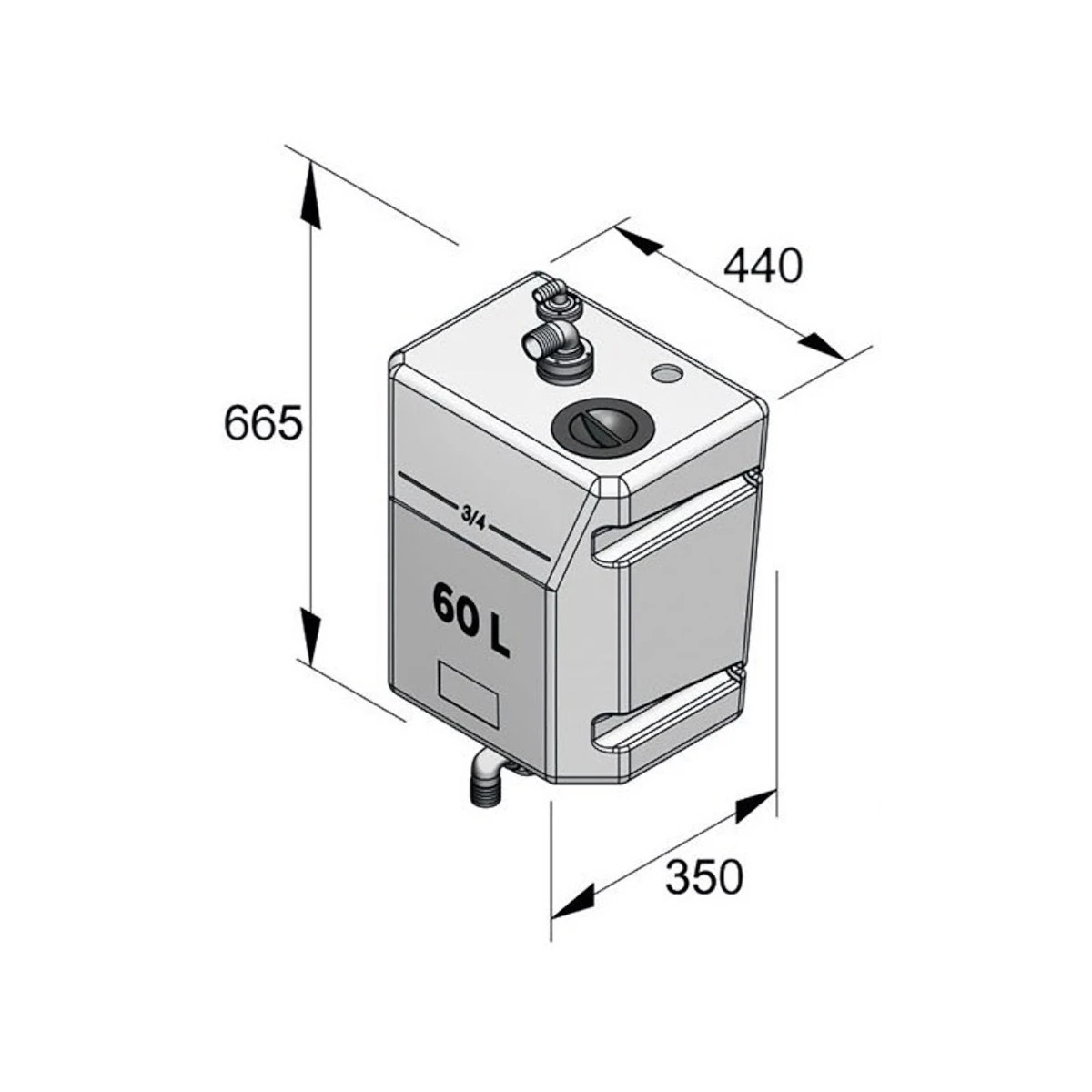 Diese Tanks werden aus geruchsundurchlässigem, leicht durchsichtigem Kunststoff gefertigt, damit kann der Füllstand einfach von außen erkannt werden. Verfügbar in 4 Größen, passend für die Wand- oder Schottmontage oberhalb der Wasserlinie. Die Tanks werden inklusive Inspektionsdeckel und Anschlüssen geliefert. Die Öffnung für den Einlassanschluss ist bereits vorhanden. Ein angewinkelter Einlassanschluss muss extra bestellt werden.